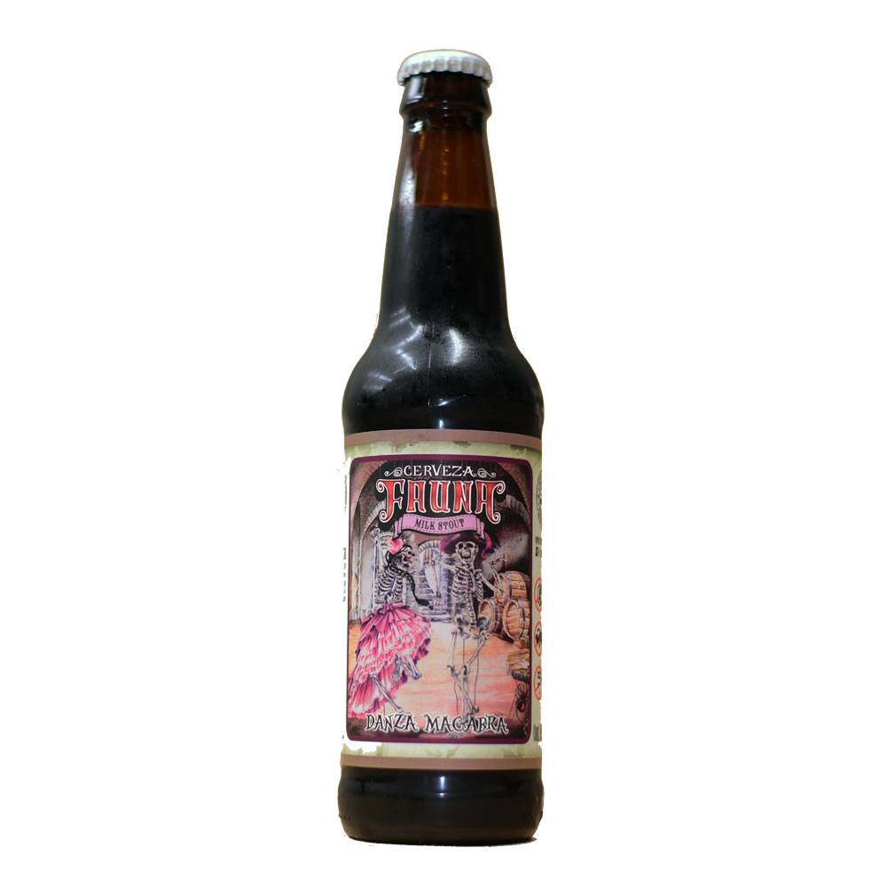 Cerveza Fauna Danza Macabra. Dulce al paladar, con adiciones de canela y cacao mexicano.