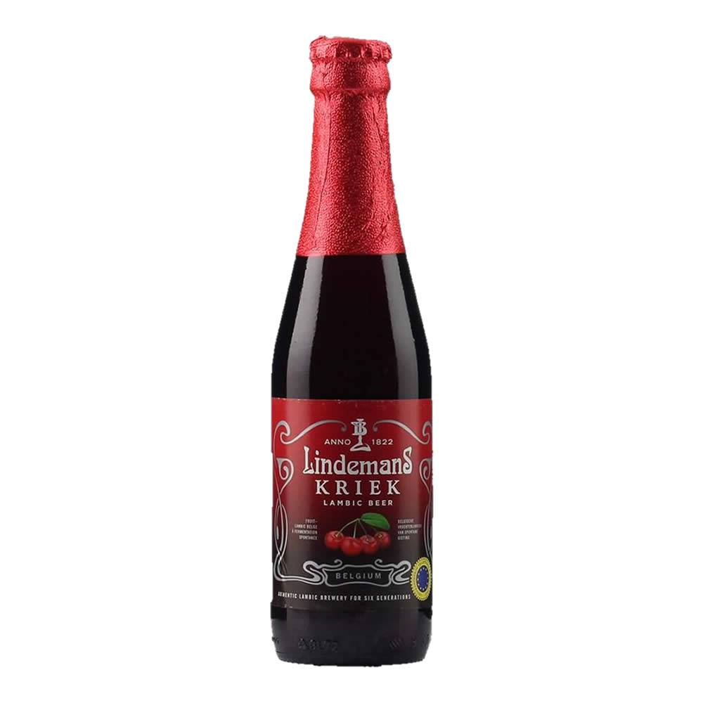 Cerveza Lindemans Kriek. Cerveza negra brillante con espuma beige. Marcada nota a cereza naturas, almendras verdes, caramelo y una madera, golpe de cerezas naturales, con caramelo balanceado con la acides propia del estilo y fondo de madera de roble con cuerpo bajo medio y amargor bajo a nulo.
