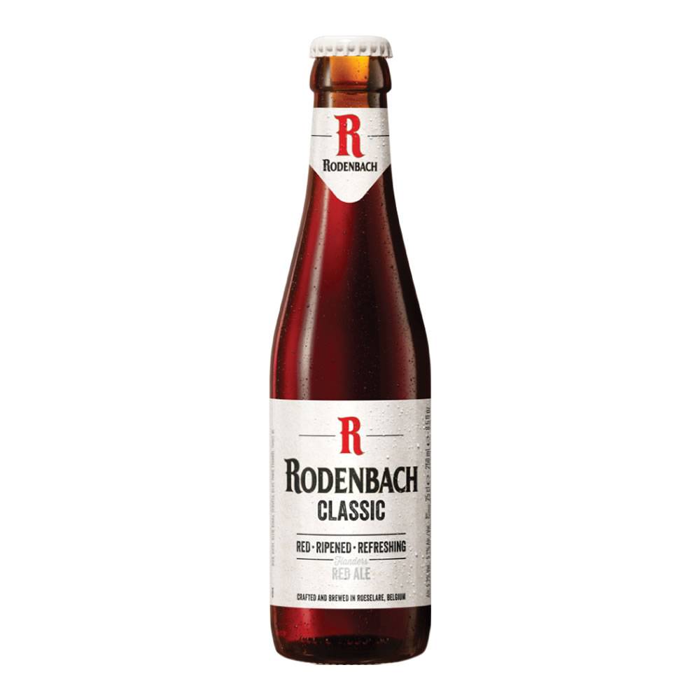 Rodenbach Classic es la cerveza rojiza flamenca original. Es el resultado de la combi- nación de cerveza joven (75%) y cerveza madura (25%) para luego ser añejada en barricas de roble, aportándole este proceso una acidez pronunciada y una delicada nota frutal. Color Rojizo. Aroma frutal con un toque a caramelo. Retrogusto ligeramente ácido y frutal. Color rojizo.